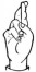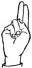 На ћирилици написано МАХАИЛО КЛИНЦОВ састоји се из 14 слова [?]. Исписано ћириличном једноручном азбуком за глувонеме: